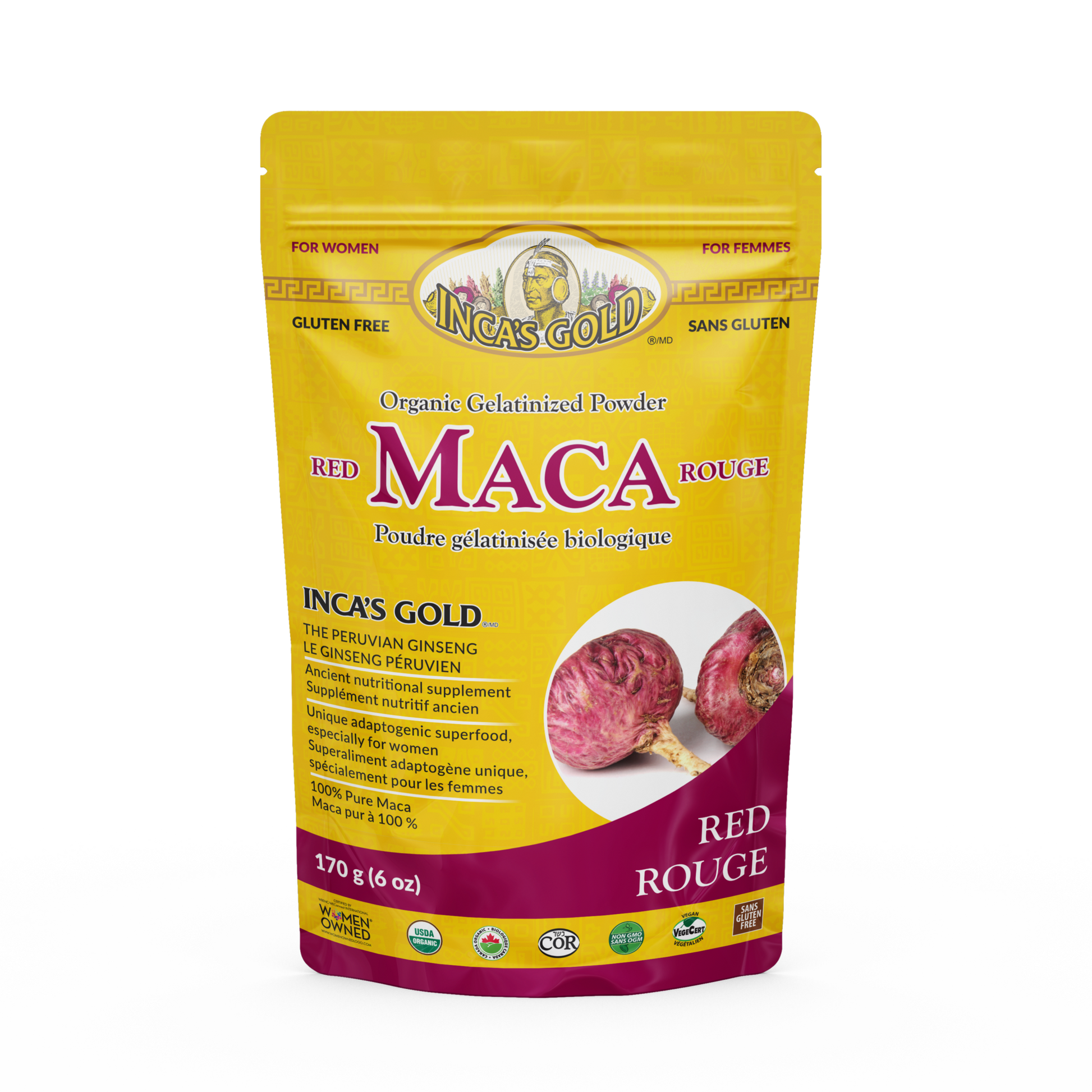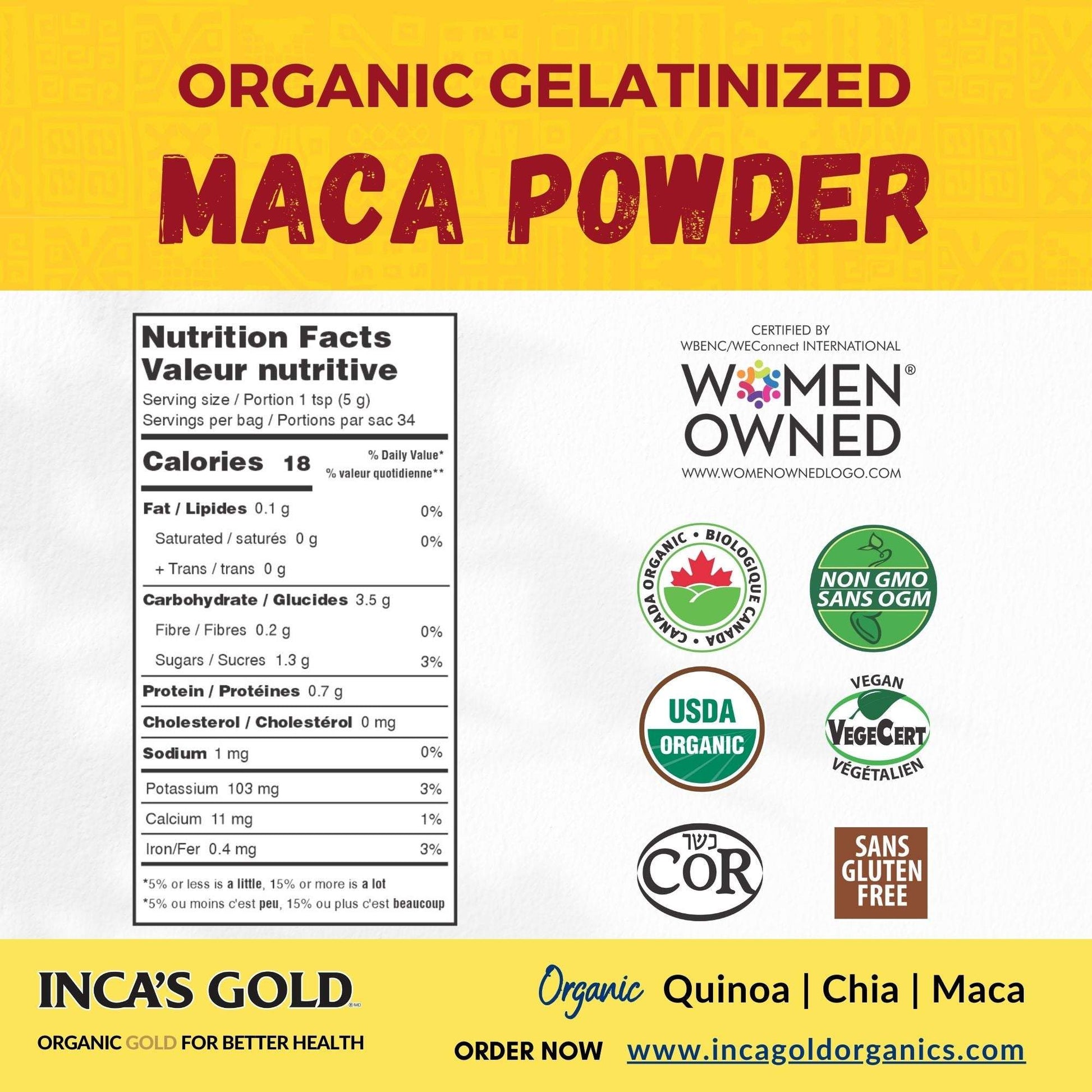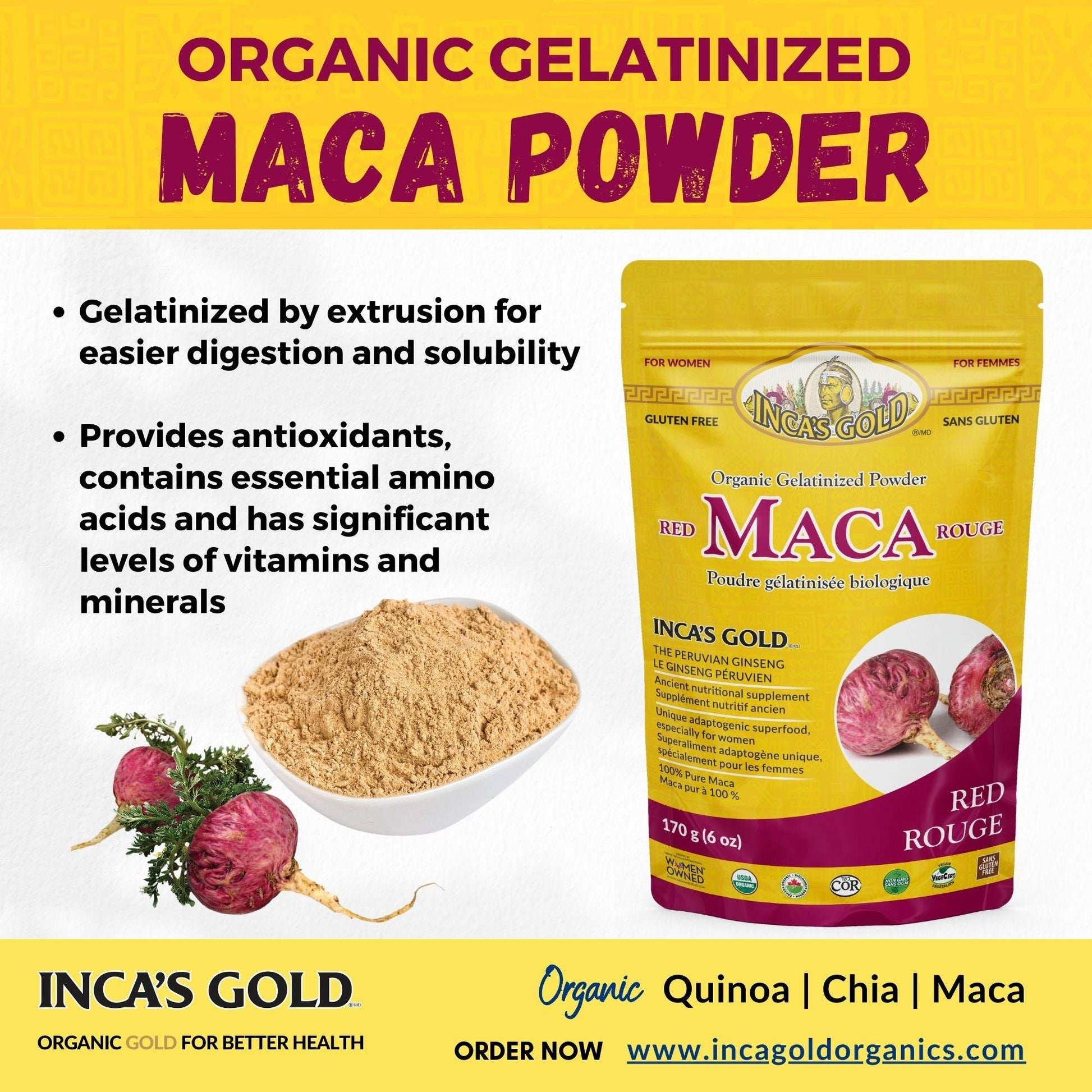 Red Maca powder contains only red maca roots and has been gelatinized for better digestion and easier absorption.