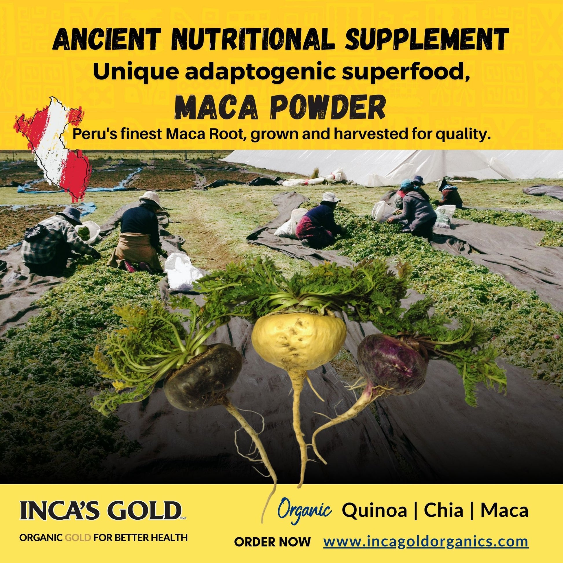 Maca is an herbaceous plant native to the high Andean Mountains of Bolivia and Peru. It is one of the only food plants in the world able to thrive at such a high altitude. It is a potent, ancient superfood that has been used by indigenous Andean societies as a source of nourishment and healing for thousands of years.